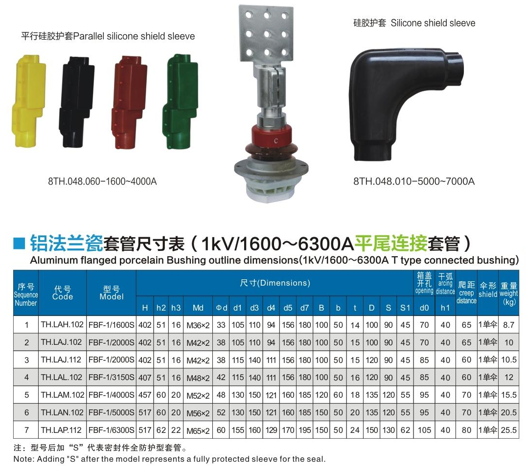 鋁法蘭瓷套管1kV/1600~6300A平尾連接套管