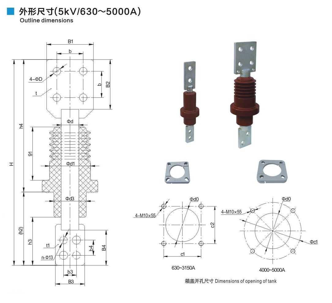 樹(shù)脂干式套管5kV/630~5000A鏟形連接套管
