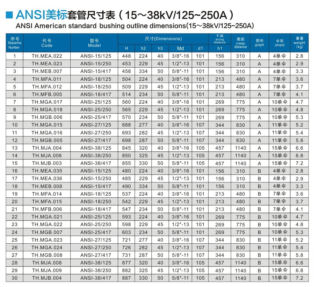ANSI美標套管15~38kV/125~250A