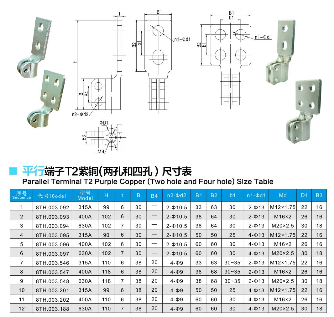 傾角端子T2紫銅(兩孔和四孔)