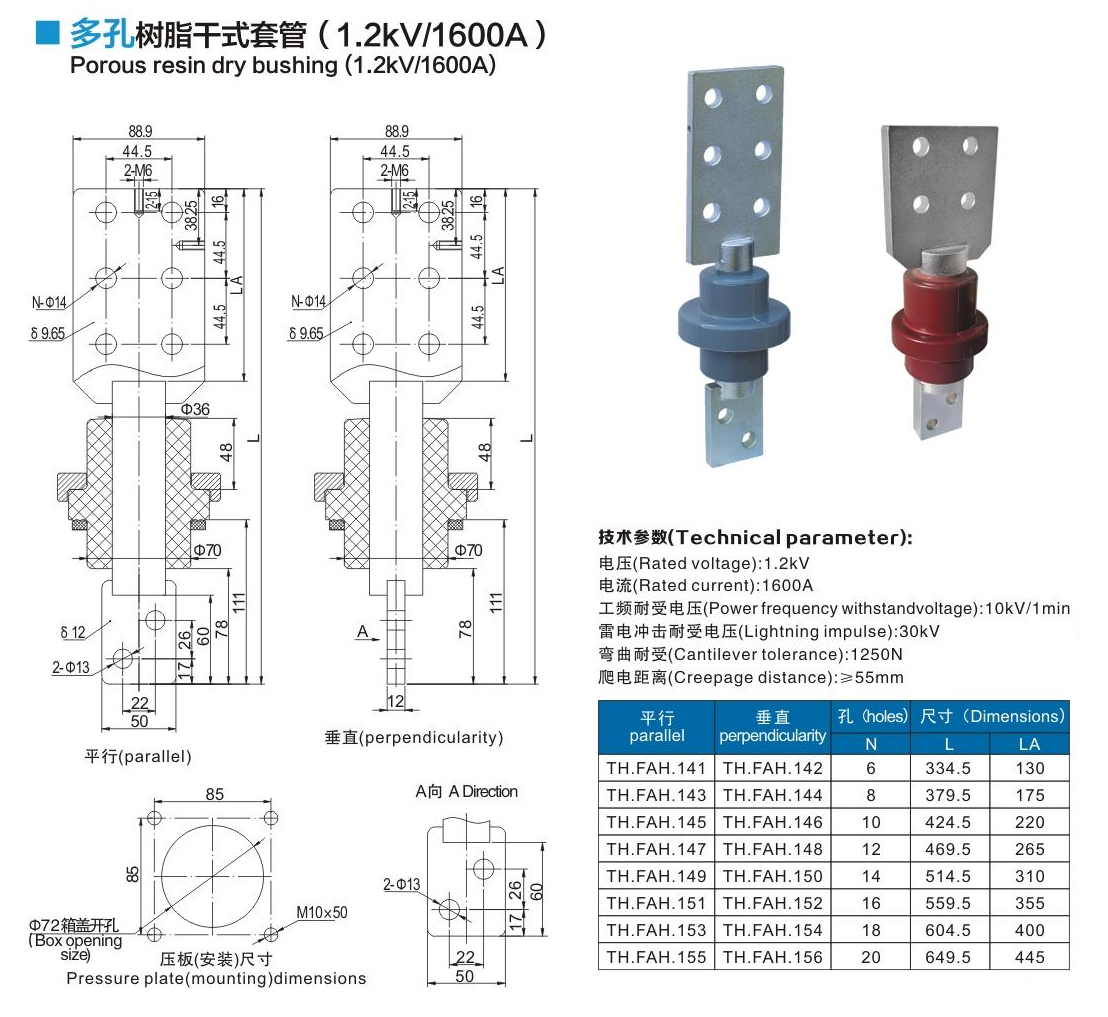 多孔樹(shù)脂干式套管1.2kV/1600A