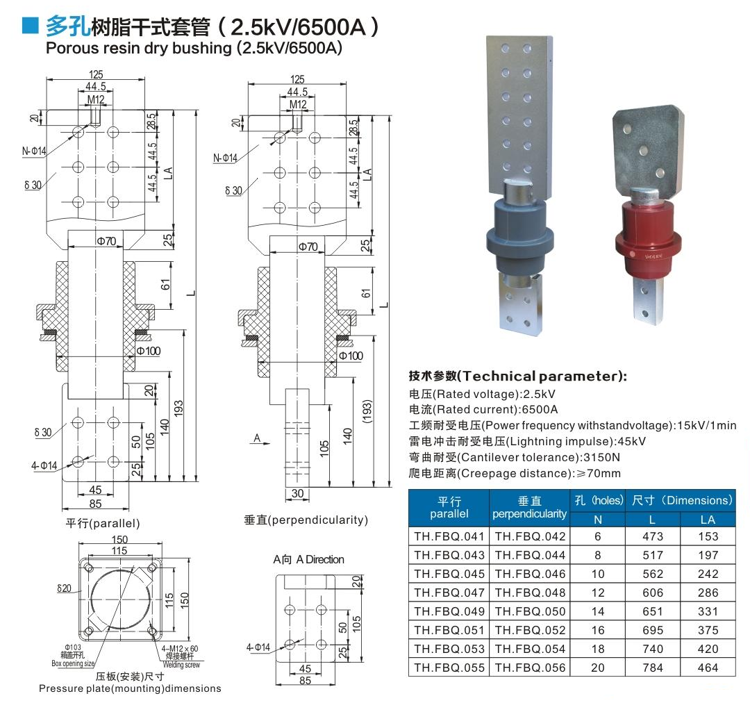 多孔樹(shù)脂干式套管2.5kV/6500A