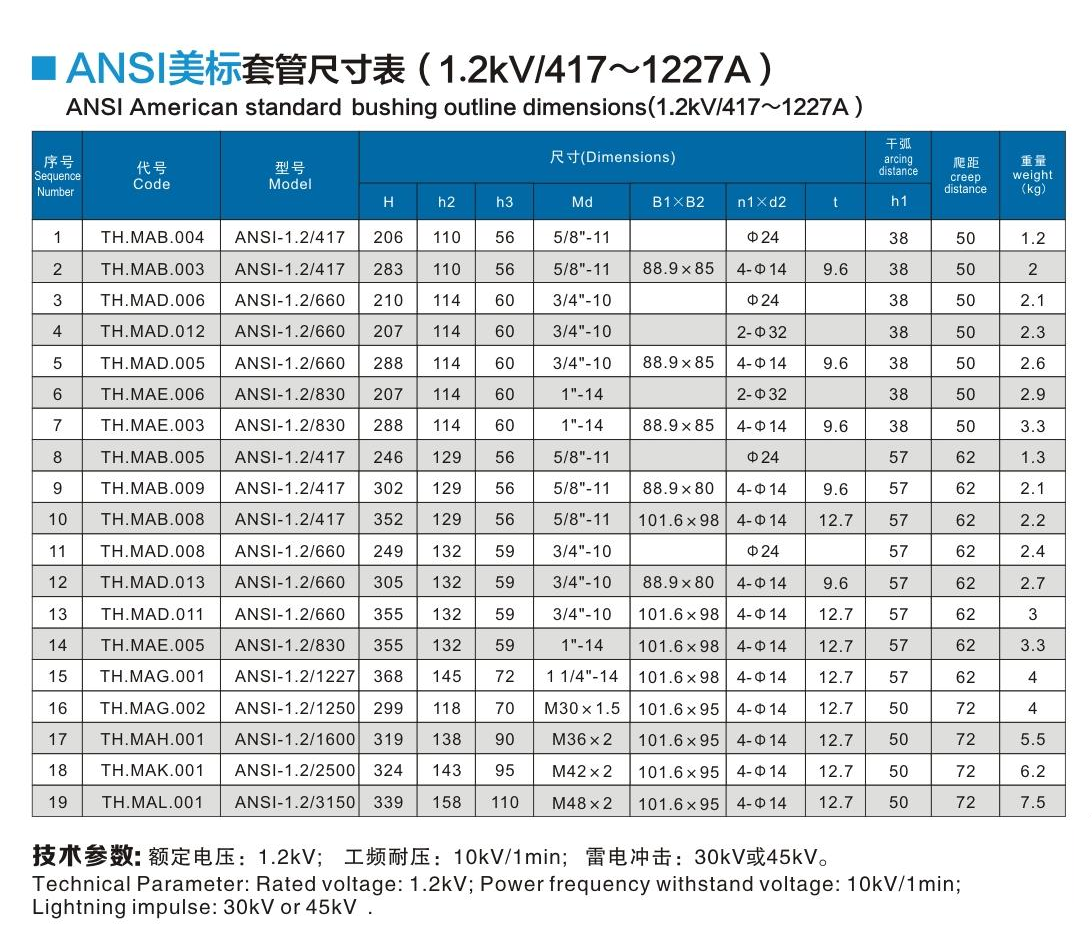 ANSI美標(biāo)套管1.2kV/417~1227A